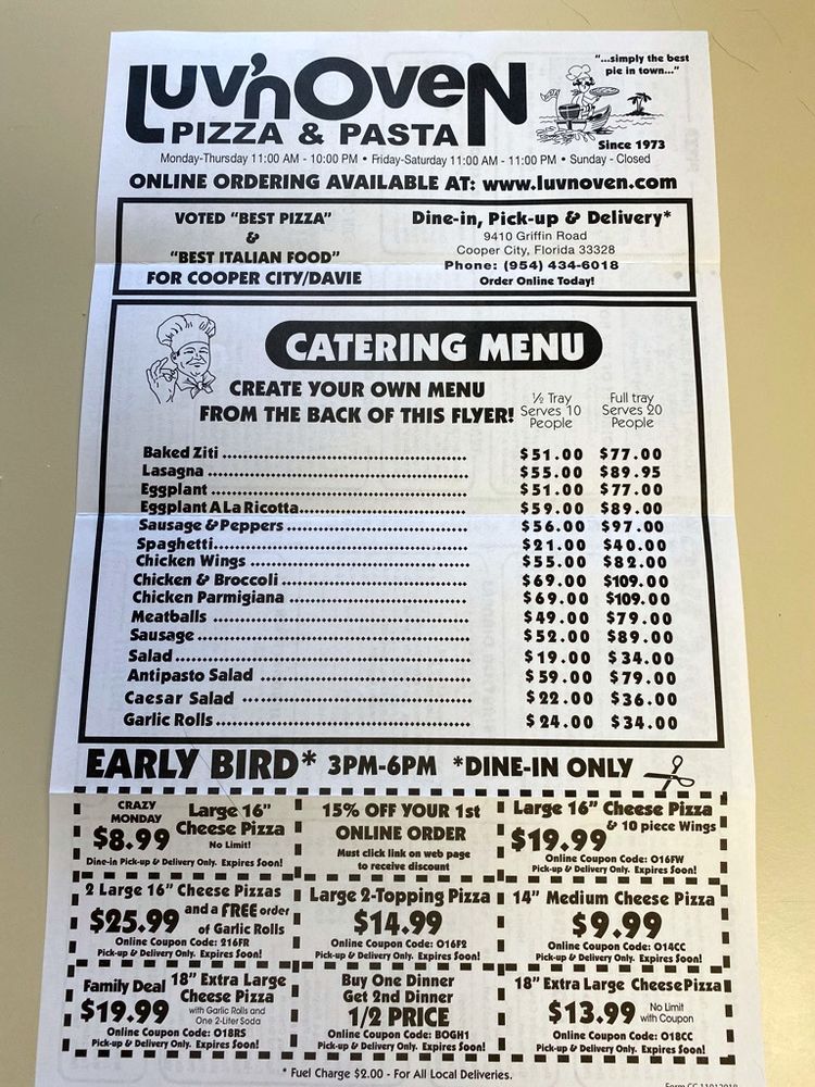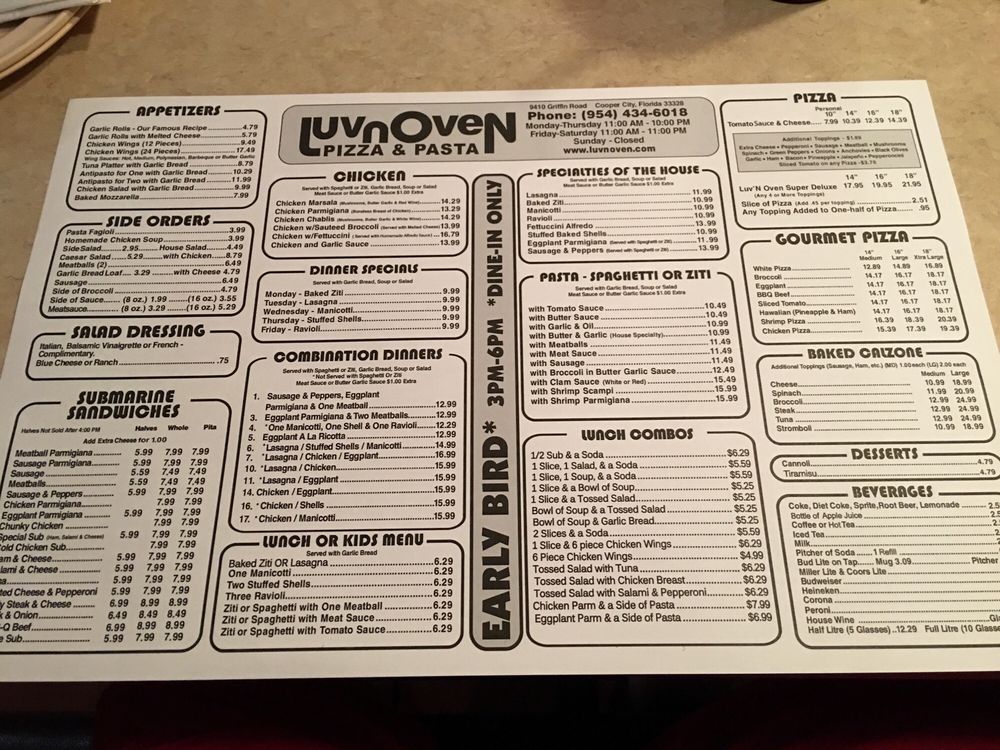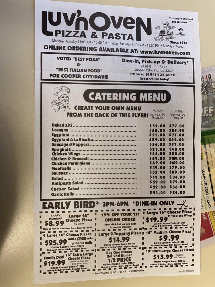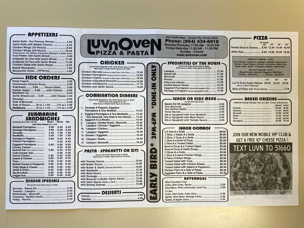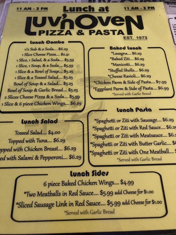 Luv'N Oven Pizza & Pasta Menu (2025 Update)